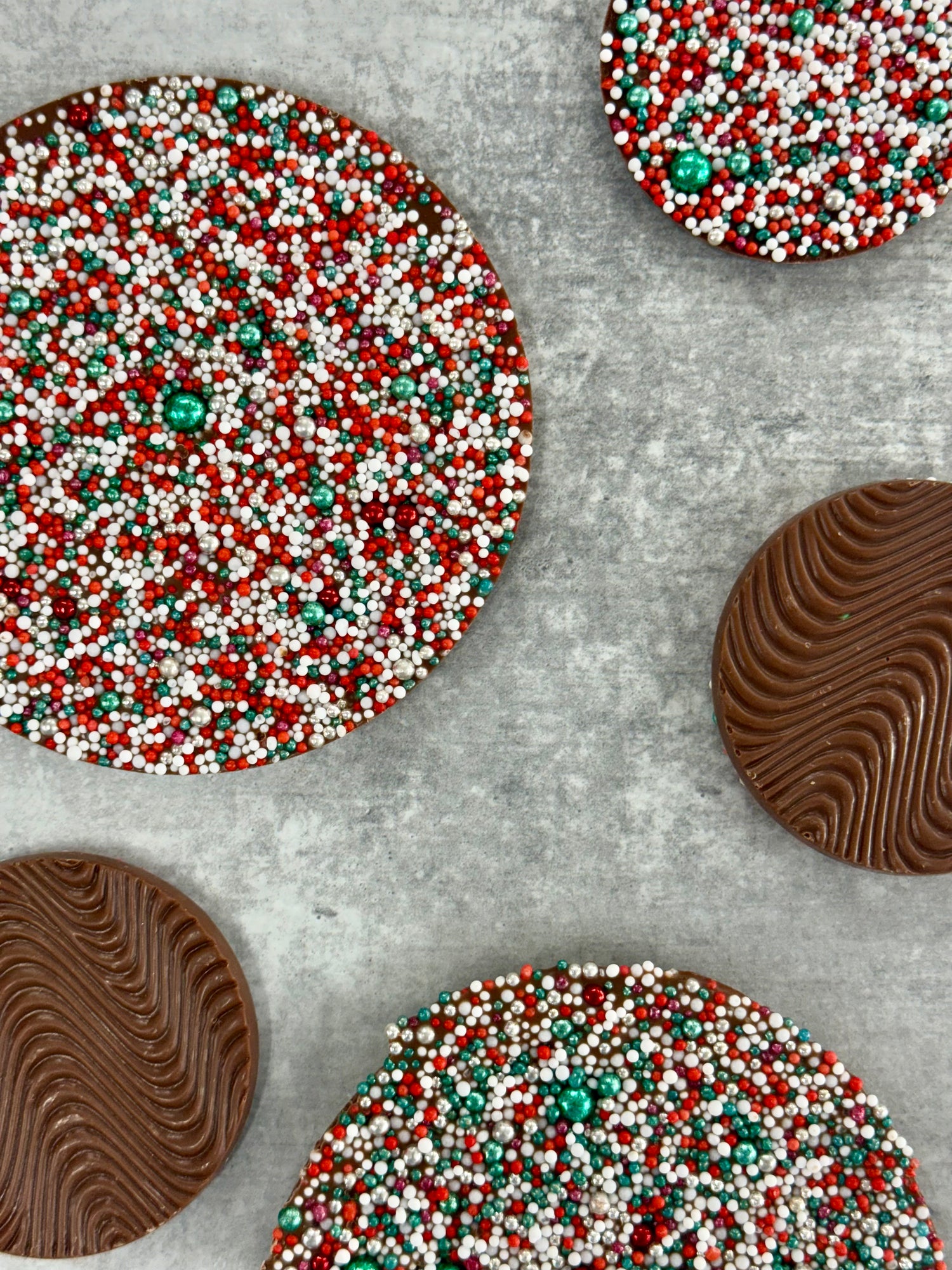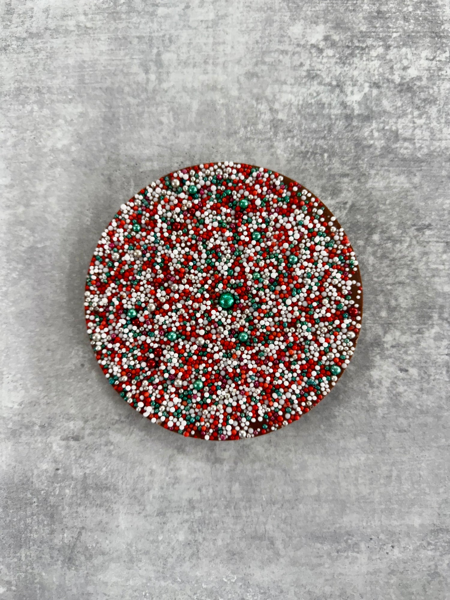 Indulge in our delicious festive Christmas Speckle! It's the perfect combination of our decadent Belgian chocolate, sprinkled with our beautiful metallic festive sprinkles. Smooth and crunchy, all in one bite! A special gift for a loved one, or a cute addition to any Christmas bundle. Or why not treat yourself?!