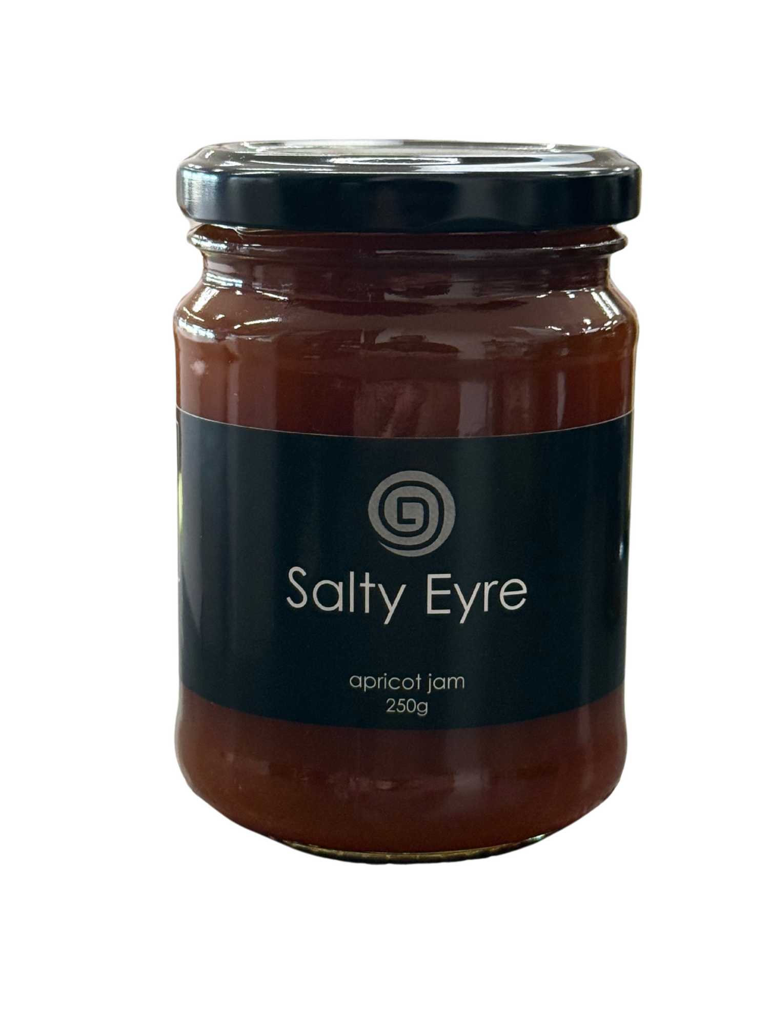 Tasty apricot jam produced using apricots from the backyard, sugar and lemon juice.