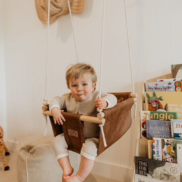 Handmade, made to order outdoor or indoor swing. This infant swing comes with matching fabric cushion (unless customised by order). Made from an outdoor acrylic canvas and UV stable upholstery graded thread, these are made to last!
