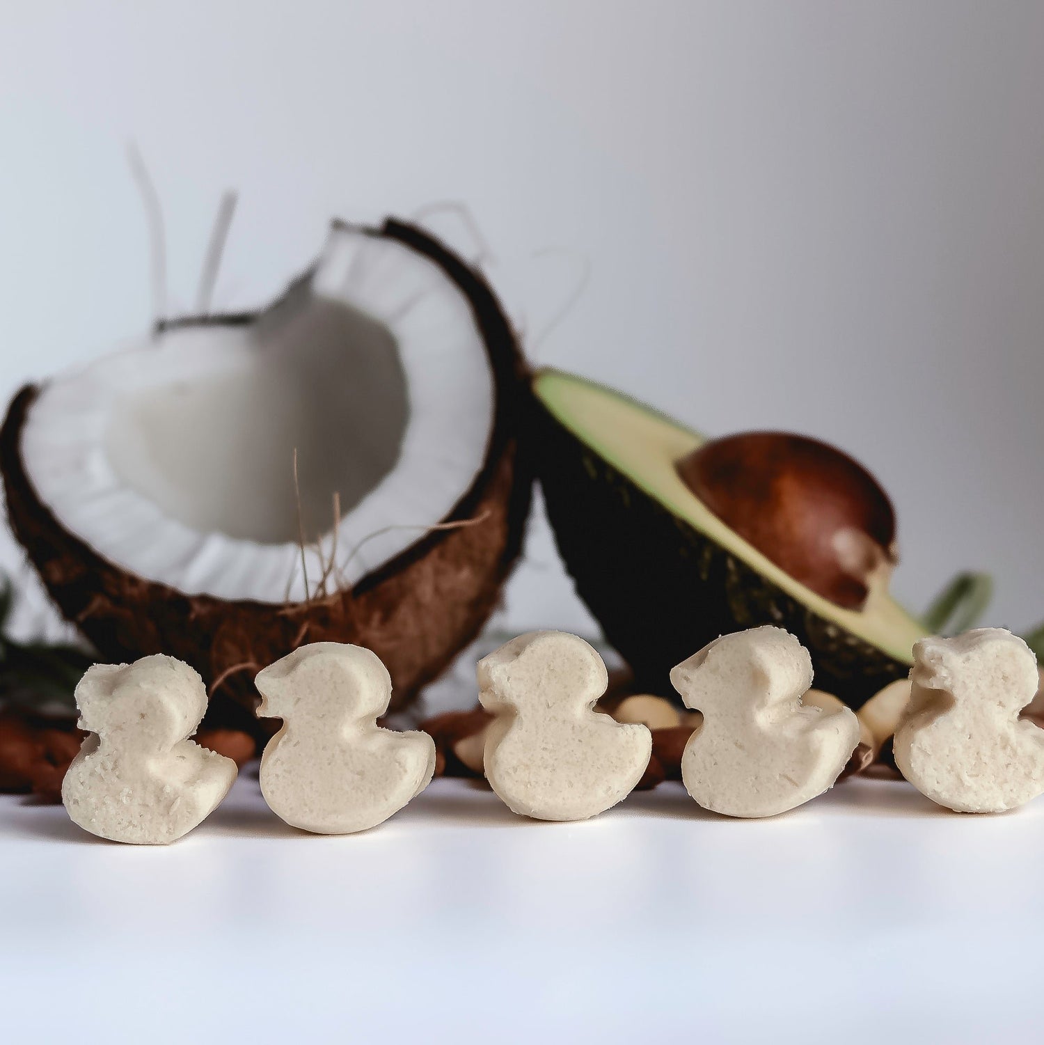 Our ever popular duckie bath bombs! Fuzzy, fizzy and as yellow as sunshine. We use crushed calendula flowers for their colour, and other powerhouse ingredients like aloe vera, honey and lavender essential oil making them extra special - Only the best for our babes!