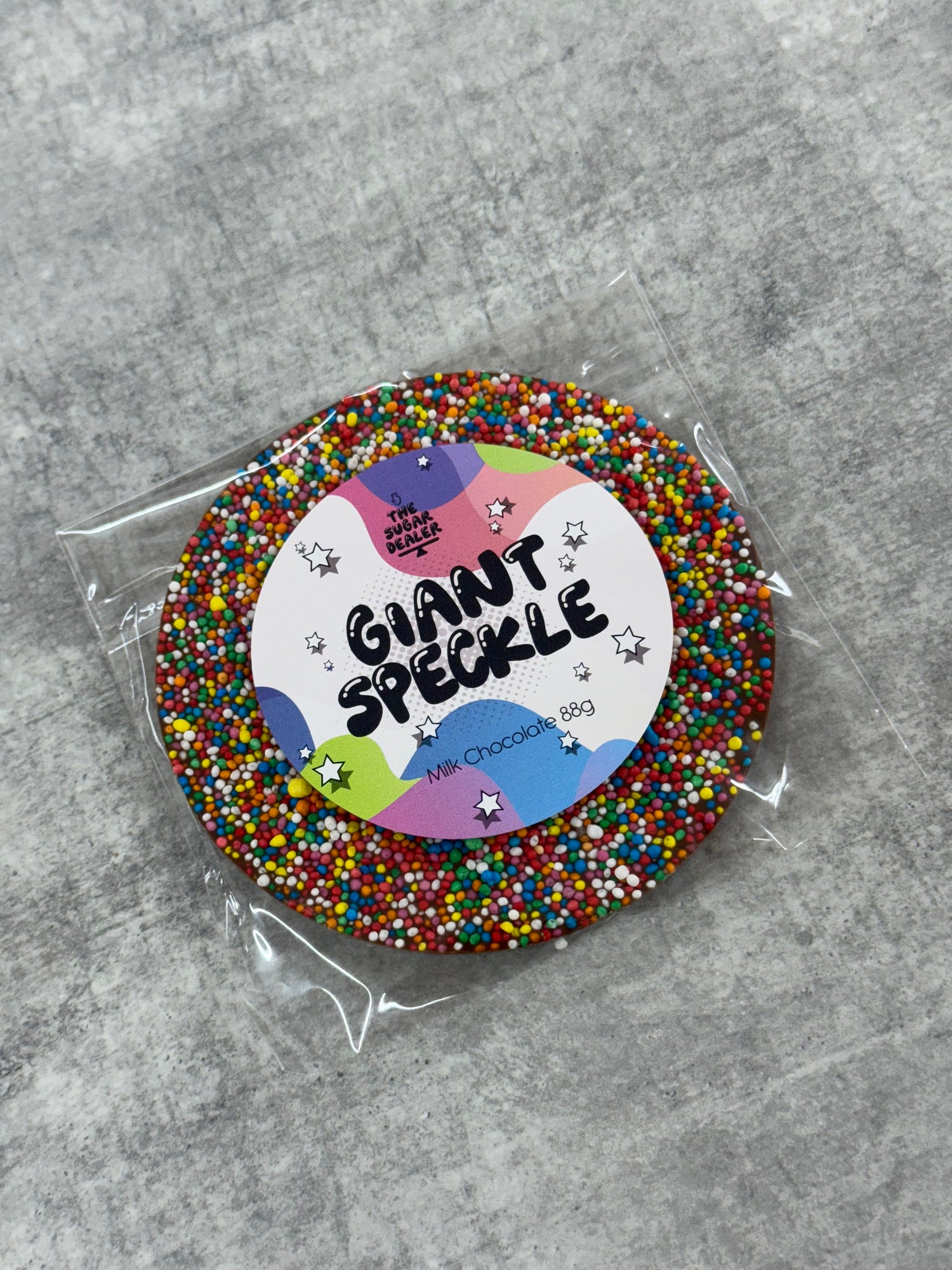 Elevate your chocolate cravings with our Giant Speckles, crafted from the finest Belgian milk chocolate. Each speckle is generously sized and covered in colorful, crunchy sprinkles, creating a delightful blend of rich, creamy chocolate and satisfying texture. Perfect for gifting, sharing, or treating yourself, these speckles are sure to impress even the most discerning chocolate lover.